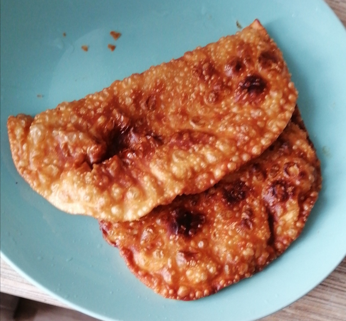 Эти бортики потом повторно можете слепить замесить, получится ещё пару чебуреков.
