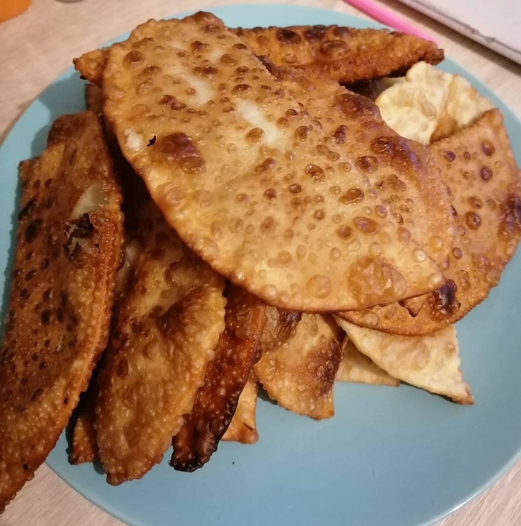 А получаются сочные, слоёные, хрустящие, тем временем мягкие Чебуречки!