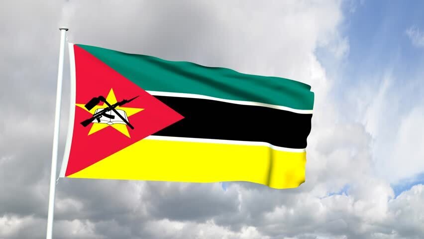 "Государственный символ Республики Мозамбик, современный флаг был принят 1 мая 1983 года. Флаг Мозамбика - единственный в мире флаг, на котором есть изображение современного оружия - автомата Калашникова"