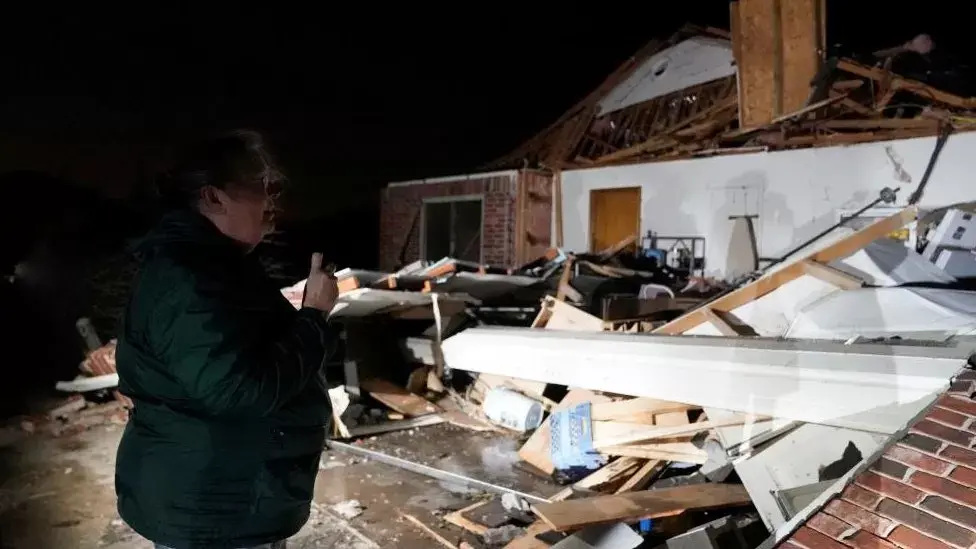 В Оклахоме, по сообщениям, семь торнадо обрушились на штат в конце воскресенья. Появились кадры, на которых видны перевернутые автомобили и дома с провалившимися крышами из-за сильного ветра. Официальные лица сообщили о по меньшей мере 12 травмах, связанных с непогодой.