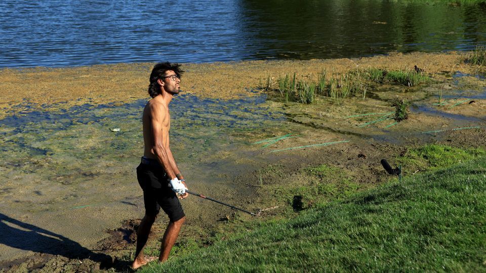 Гольфист Акшай Бхатия снимает рубашку, чтобы сыграть грязный удар - дважды