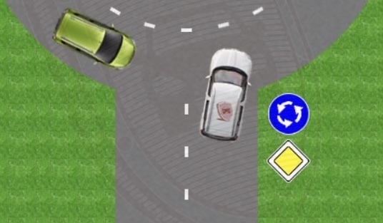 Ну, а третий вариант, когда машина на кольце отдает свое преимущество тому, кто едет по главной дороге .
