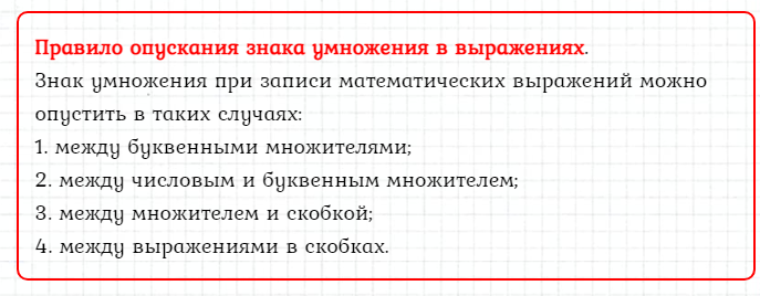 Уточню: при умножении на переменные. Когда умножаются числа, то, понятно, знак умножения опускаться не будет. Это я уточняю для тех, кто в бронепоезде, а то ведь неправильно поймут в очередной раз.