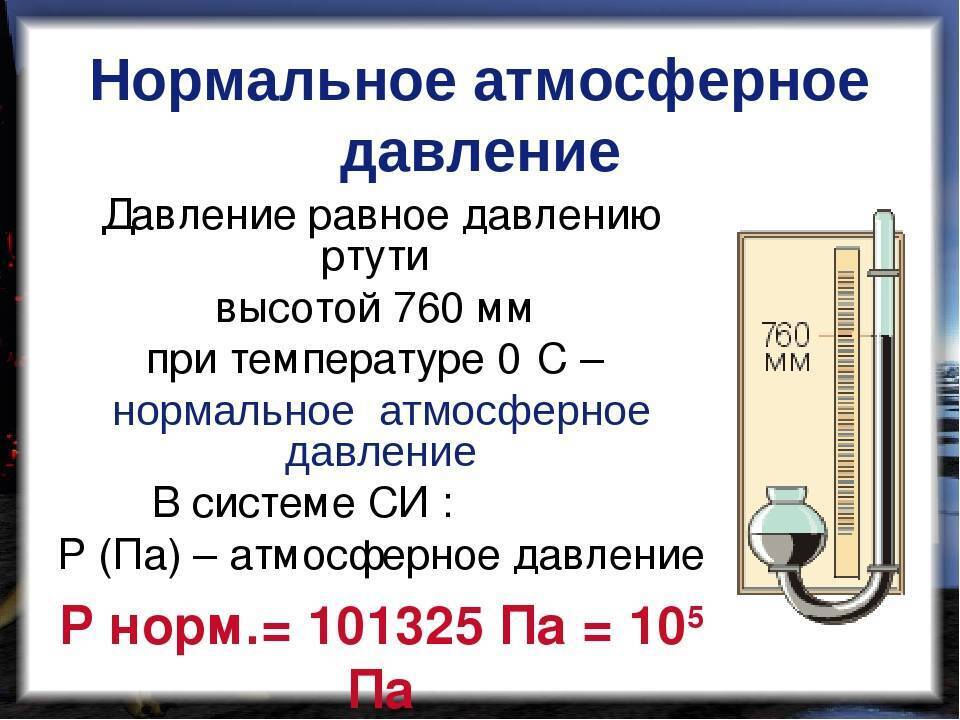 Стандартным атмосферным давлением считается величина 760 мм рт. ст. Давление измеряется при температуре 0°C над уровнем моря. Каждый регион имеет постоянную высоту над уровнем моря, поэтому ежедневное атмосферное давление в разных местах разное.