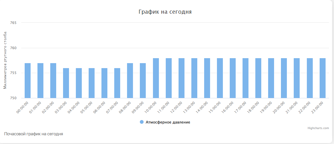 Завтра, в четверг 2 марта 2023 года, в Москве ожидается среднее давление 757 мм рт. ст. В течение дня ожидается повышение максимального давления до 759 мм рт. ст. и понижение до 754 мм рт. ст. При этом влажность воздуха в Москве достигнет 87%.