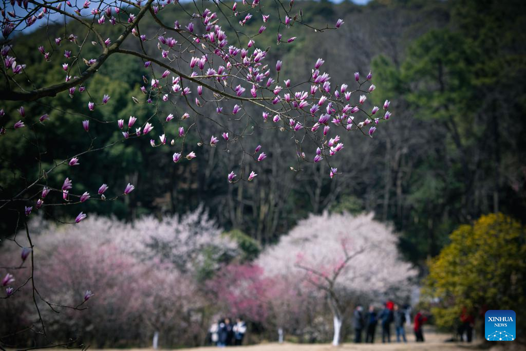 На этом снимке, сделанном 28 февраля 2023 года, показаны цветущие магнолии и сливы в Ботаническом саду Ханчжоу в Ханчжоу, провинция Чжэцзян на востоке Китая. (Синьхуа/Цзян Хань)