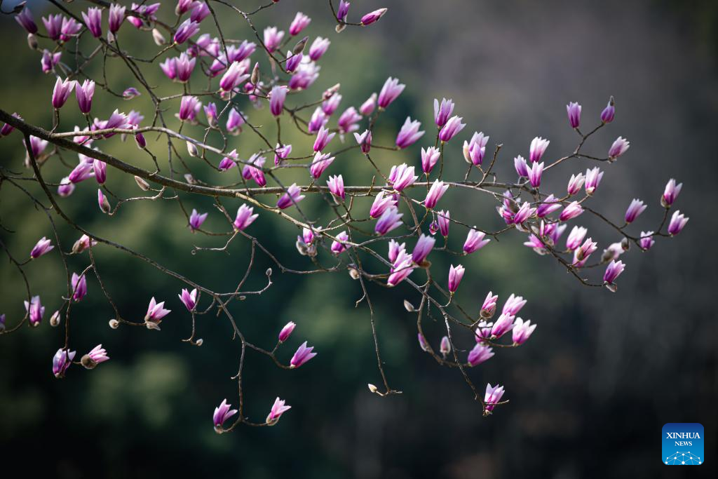 На этом снимке, сделанном 28 февраля 2023 года, показаны цветущие магнолии в ботаническом саду Ханчжоу в Ханчжоу, провинция Чжэцзян на востоке Китая. (Синьхуа/Цзян Хань)