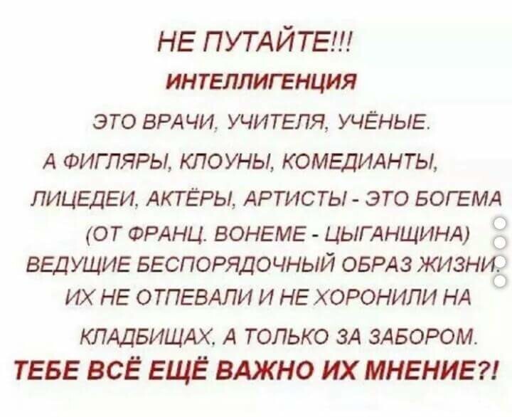 Личное мнение. Я не особо понимаю в чем такие люди определяют свою интеллигентность - это приспособленцы и вредители.