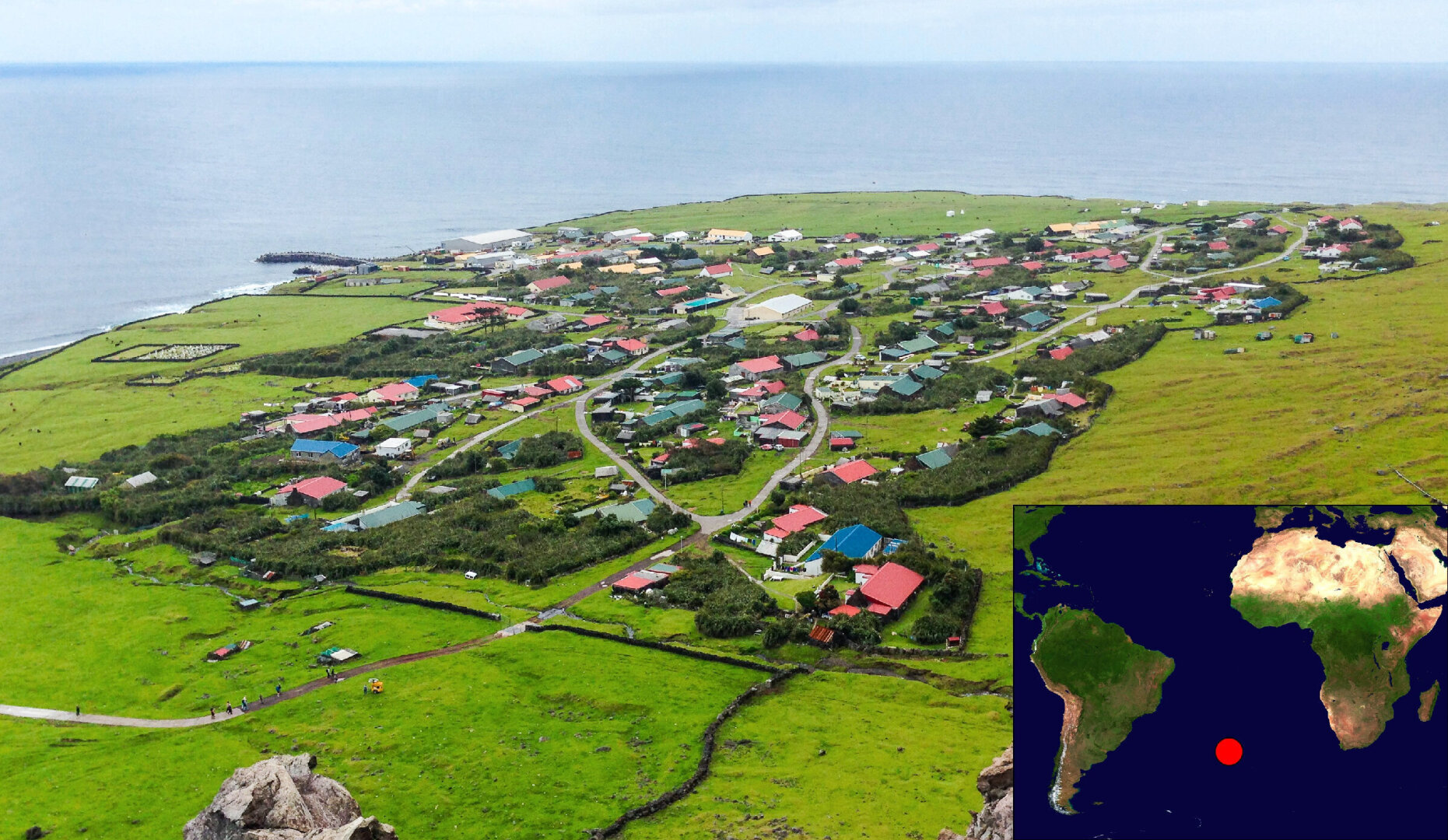 Архипелаг Тристан-да-Кунья - это состоящие из трех островов британские заморские территории, находящиеся в середине Атлантического океана между Южной Америкой и Африкой. Единственный населенный остров называется Эдинбург Семи Морей, который населяет чуть больше 250 человек.