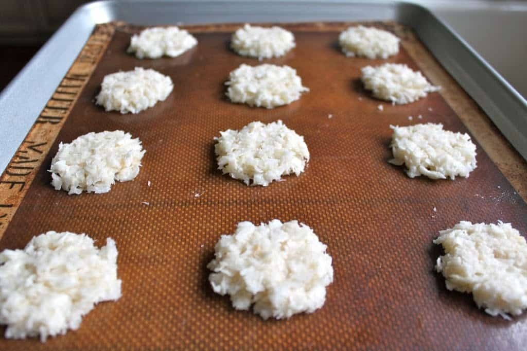 Сформировать куличики на силиконовом или пергаментном листе для выпечки на расстоянии около 2 см друг от друга.