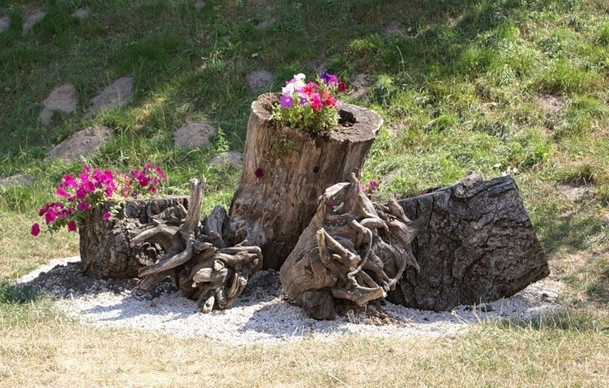 Обычная соль. Простое и доступное средство удаления ненужных корней. Берете крупную поваренную соль, сыпьте в отверстия и оставляете на зиму. На небольшой пенек уйдет примерно грамм 300 соли. Затем просто засыпаете участок землей. Пень будет разлагаться сам. Сажать на этом участке ничего нельзя, почва слишком соленая. Но для изменения ландшафта этот способ отлично подойдет.