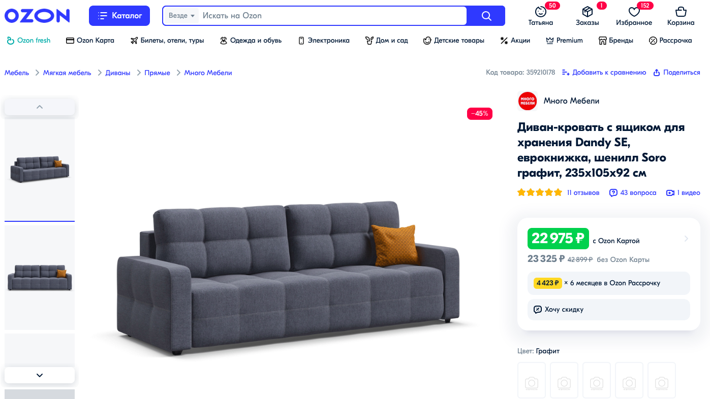 Выбираю себе новый диван на Ozon. Где можно сэкономить на покупке мебели сегодня? Подсказываю!
