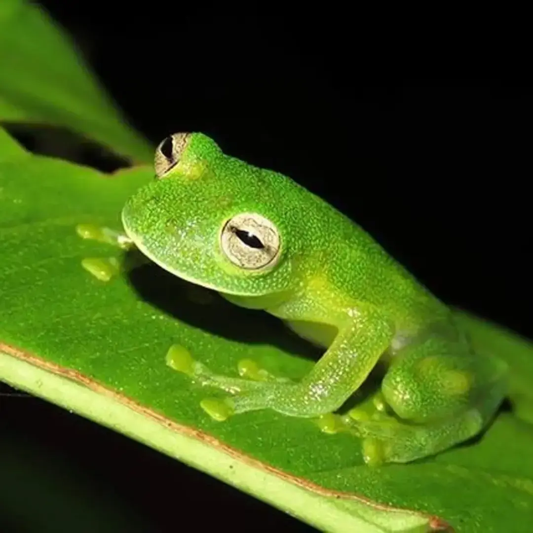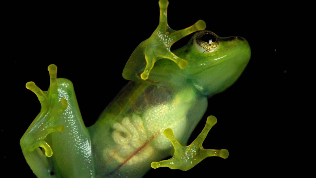Эти лягушки очаровательны и красивы, они как будто из сказки. Стеклянные лягушки крошечные и могут поместиться на ладони. Сверху тело лягушки светло-зеленое, а снизу - прозрачное, открывающее все внутренние органы. Они также могут быть белыми с сетчатым рисунком из желтых пятен, которые имитируют яйца самки. На спине самцов этот узор помогает сбить с толку хищников, когда самцы охраняют оплодотворенные яйца.