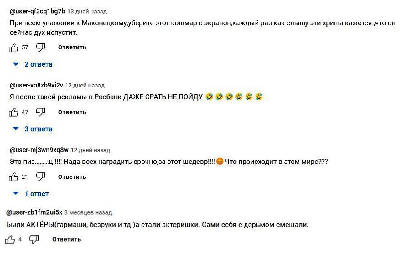 Посмотрев эту жуть в пятый раз и поняв, что «умная» колонка гораздо мудрее Маковецкого, я прогулялся в Сеть и выяснил мнение народа об этом рекламном ролике. Взял самые безобидные комментарии.