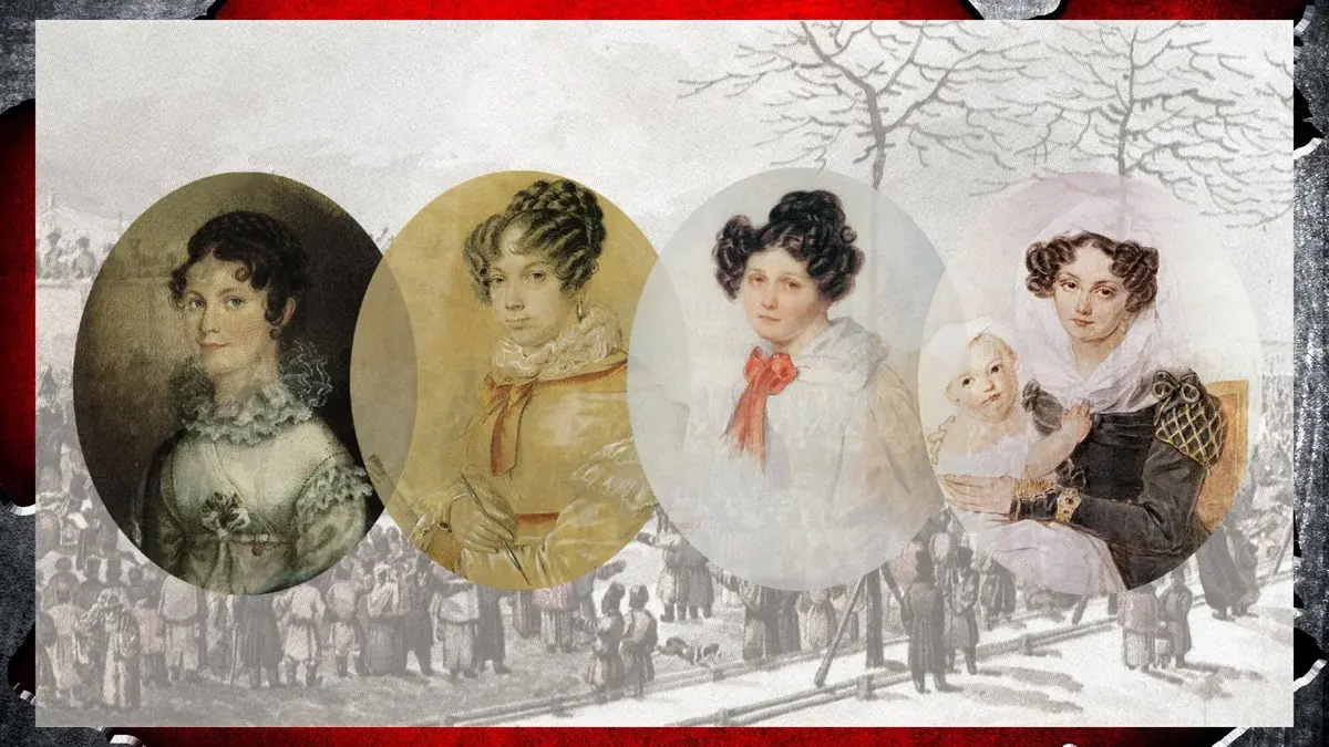 Эти женщины были женами и дочерьми декабристов, группы дворян, возглавивших неудачное восстание против царя в 1825 году. После подавления восстания декабристы были сосланы в Сибирь, где провели годы в каторжных работах и изоляции.