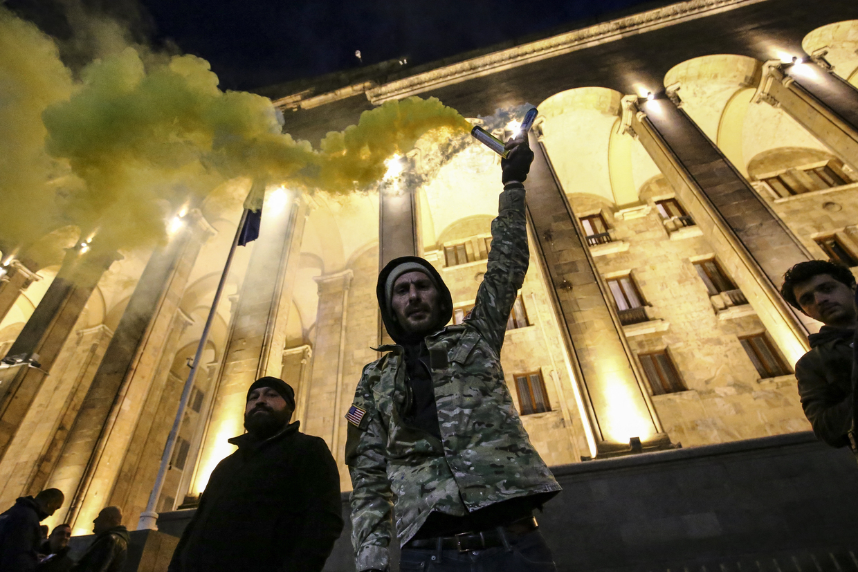На этой неделе главная улица Тбилиси, проспект Руставели, была перекрыта на несколько дней, поскольку тысячи людей скандировали антиправительственные лозунги перед зданием парламента и пели национальный гимн Грузии. По вечерам на площади собиралось еще больше протестующих. К ночи разъяренная толпа бросала в полицию петарды, камни и бутылки с зажигательной смесью, пытаясь снести железный забор и штурмовать парламент. Полиция применила водометы для оперативного тушения пожаров и облила толпу водой, одновременно распылив слезоточивый газ для разгона присутствующих.