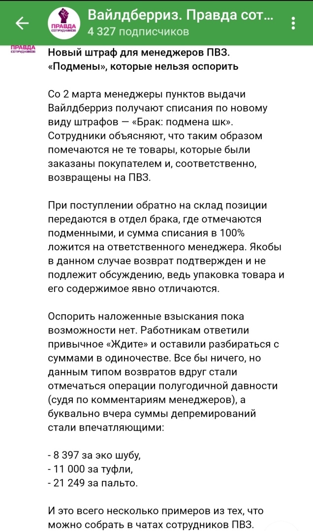 Велдберри. Как там работают люди? Это беззаконие, или все-таки юридически Велдберри, как работодатель все делает правильно? Я шокирована подобным.
