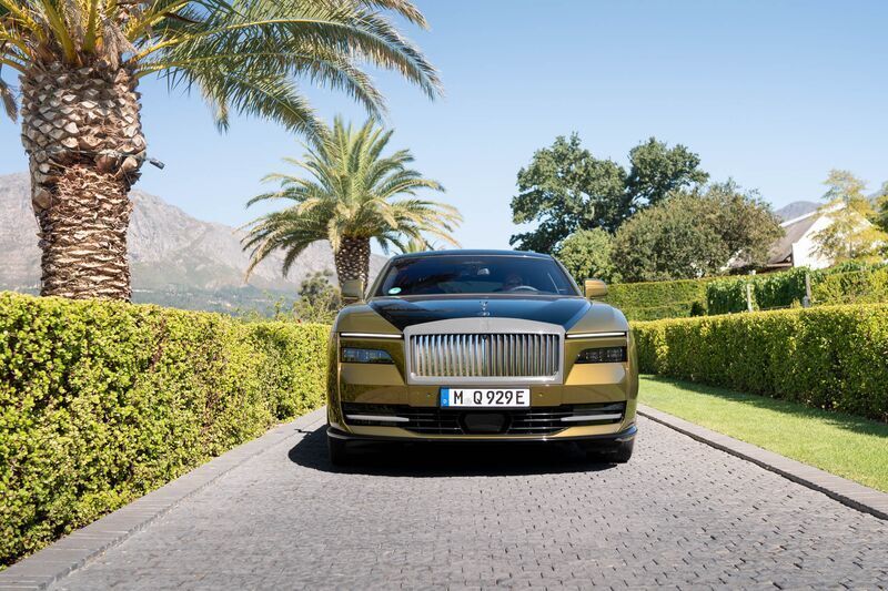 Сначала я исследовал его на улицах вокруг Франшхука, примерно в 50 милях от Кейптауна. Желто-желтая краска с металлическими вкраплениями блестела на африканском солнце, а зияющий передний нос и 23-дюймовые колеса выглядели достаточно царственно для короля Чарльза. Две двери имеют колоссальные 1,5 метра (5 футов) в длину, настолько большие, что при нажатии на тормоз их закрывает электродвигатель, потому что вы не можете дотянуться до ручки. Удлиненная и подсвеченная решетка радиатора выглядит достаточно голодной, чтобы проглотить слона. Говоря о багажниках, спереди их нет, как у других электромобилей. В Rolls-Royce, похоже, пришли к единому мнению, что это было бы недостойно.
