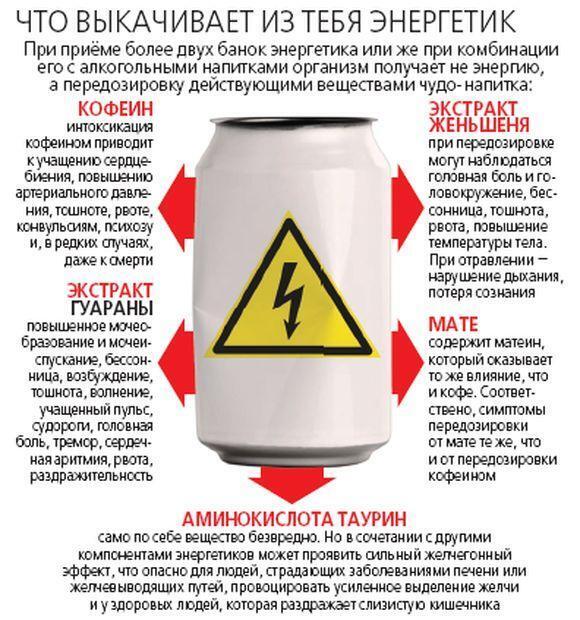 Никогда не пил их. А недавно в светофоре набрал товар более тысячи рублей. Предложили за один рубль энергетик. Взял, нахаляу, и уксус сладкий. Но с не энергетиком. Пьётся прекрасно, но потом головные боли ужасные, и стало чистить организм. Всё что выпил, вырыгал до последнего. Не принимает организм данный напиток.