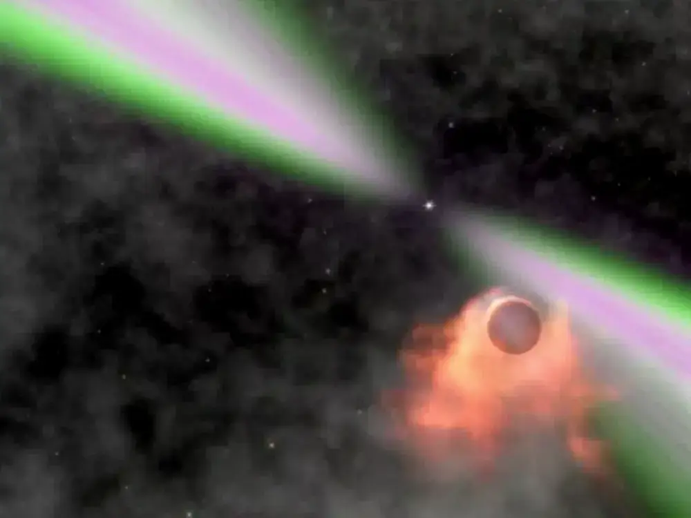 Пульсар "Черная вдова" - или пульсар J1311-3430, как его называют в астрономических кругах, - представляет собой тип нейтронной звезды, которая медленно разрушает свою звезду-компаньона излучением, сообщает Американское астрономическое общество. Чем больше материала пульсар отбрасывает от звезды, тем медленнее он вращается. Энергия, теряемая пульсаром при замедлении вращения, может взорвать его компаньона, заставив его испариться.