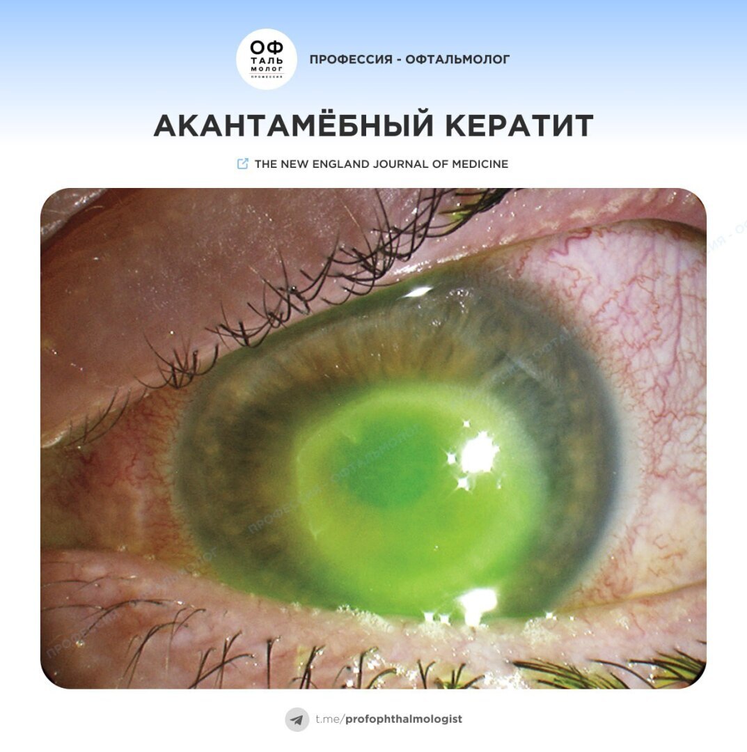 Офтальмологическое сообщество https://t.me/profophthalmologist/517 делится случаем: на прием обратилась женщина. Одной из жалоб была периодическая боль в левом глазу на протяжении 2-х месяцев, нечеткость зрения, светочувствительность. Женщина носит контактные линзы ежемесясной замены. Во время плавания и принятия душа, линзы не снимала.