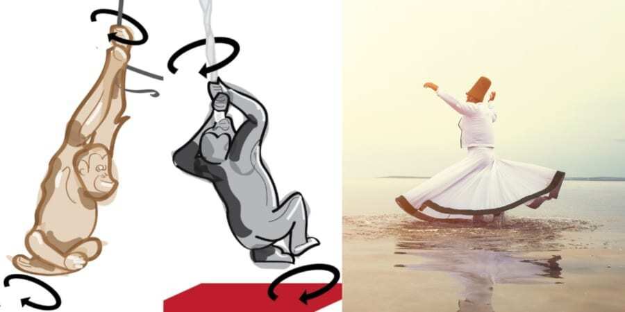 Чтобы понять, почему и обезьян, и людей так привлекает круговое вращение, необходимо рассмотреть, как устроен наш мозг. Обезьяны более остро реагируют на ощущения из-за высокого уровня гормонов, которые вырабатываются в их мозге, когда они испытывают сильные эмоции, поэтому считается, что вращение дает ощущение приподнятого настроения и свободы. Это движение даже сравнивали с "обниманием себя", обеспечивающим комфорт и облегчение в стрессовых ситуациях.