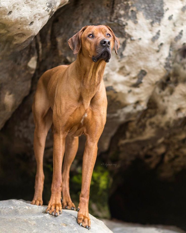 Родезийский риджбек - крупная и спортивная порода собак, первоначально выведенная в Южной Африке. Они использовались в качестве охотничьих собак, особенно для охоты на львов, и известны своей храбростью и силой. Родезийские риджбеки имеют характерный волосяной покров, спускающийся по спине, что и дало им их название.