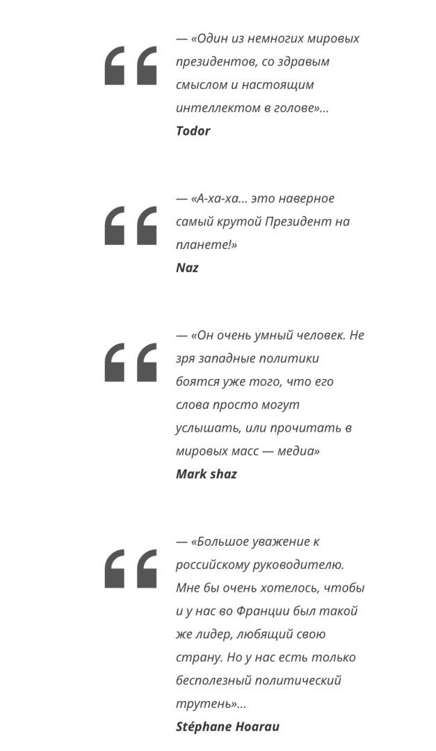 Там, за границей России Владимира Путина считают защитником своей страны, который никогда не даст свой народ в обиду и примет все необходимые меры для безопасности российских границ.
