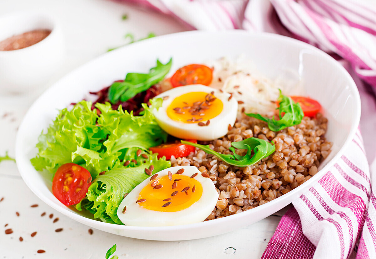 Эти сложные углеводы насыщают и заряжают энергией, а их приготовление не требует больших затрат. В то же время вареная гречневая каша обладает высокой питательной ценностью. Помимо гречки, другие сложные углеводы, которые вы можете использовать на завтрак, включают овсянку, но особенно ту, которая требует длительного приготовления, а также перловую крупу или ячневую и пшенную кашу. Вы не должны использовать манную крупу или сырые овсяные хлопья - это "быстрые углеводы", которые не содержат высокой питательной ценности.