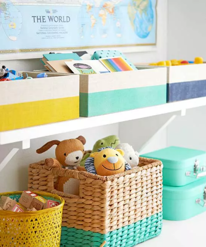 Не довольствуйтесь простыми корзинами и коробками для хранения - придайте им немного пикантности с помощью аэрозольной краски. Заклейте малярной лентой участки со всех сторон контейнера, затем, используя универсальную грунтовку и краску, распылите краску на непокрытые участки размашистыми движениями, начиная и заканчивая распыление с боковой стороны коробки. Дайте высохнуть, прежде чем снимать пленку. Используйте разные цвета краски, чтобы распределить корзины между членами семьи - это работает даже для детей, которые еще не умеют читать.