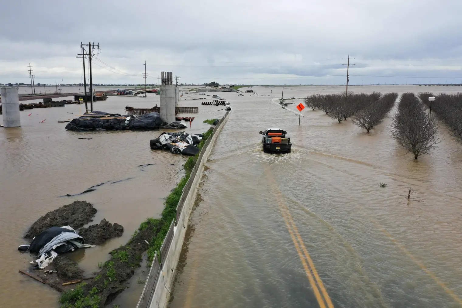 В бассейне Туларе паводковые воды уже начали заливать фермерские поля и проникать в местные общины. Сельскохозяйственные угодья недалеко от Коркорана — рядом с историческим озером Туларе — получили название «Коркоранское море ». На снимках с дрона видны фермерские дома, окруженные коричневыми паводковыми водами.