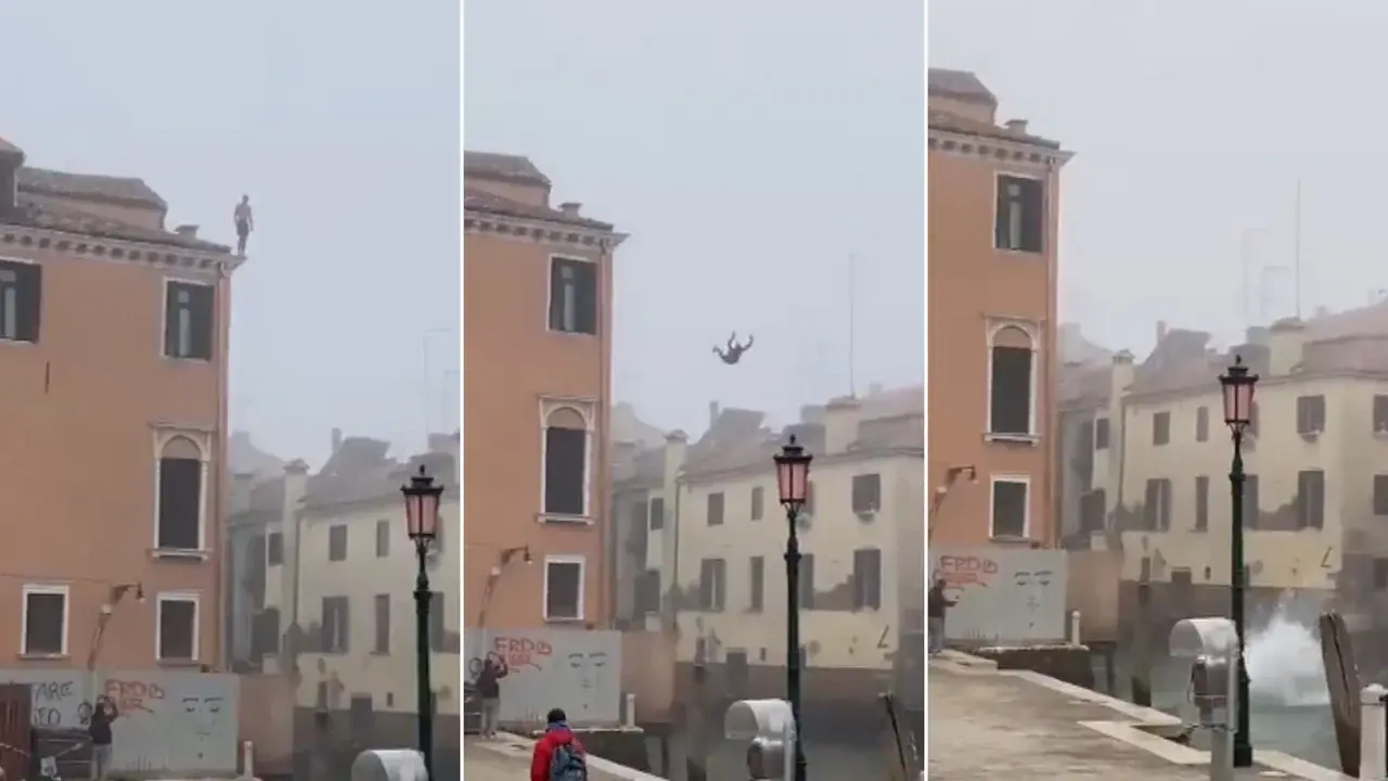 Итальянские власти разыскивают мужчину, который в четверг спрыгнул с трехэтажного дома в канал в Венеции.