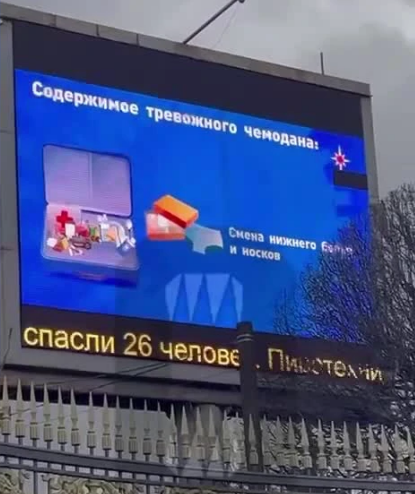 В Москве установили рекламный щит, где показывают ролик, как собрать «тревожный чемоданчик»