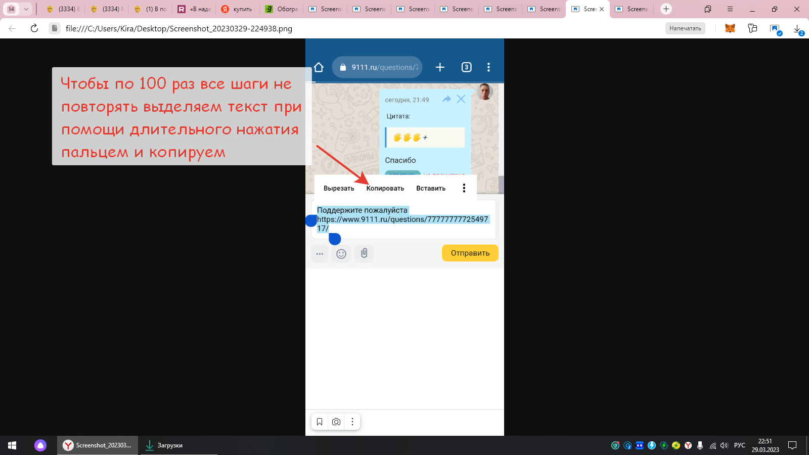 Благодарю. Это способ как зайти с браузера на данный сайт, но у многих установлено приложение "9111.ru", там, похоже, ссылку скопировать не удастся(((