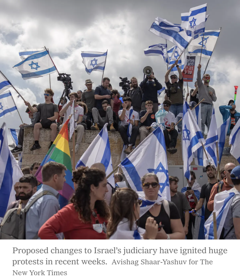 Судебная реформа разделила страну на тех, кто видит в ней захват власти правящим большинством, который разрушит израильскую демократию, и тех, кто в основном справа, кто давно считает Верховный суд чрезмерно активным и хочет дать больше власти избранному законодательному органу.