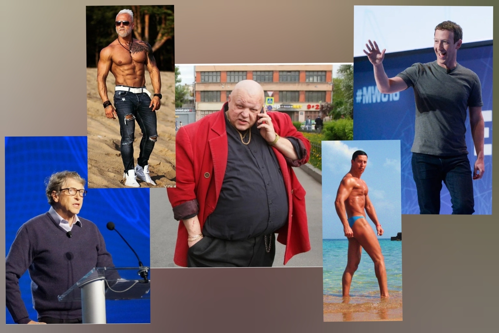 В современном обществе важны не только деньги и положение, но и то как ты выглядишь! Если в 90-е можно было ходить с "авторитетом" и в малиновом пиджаке, то сейчас этого мало! Большинство богатых и знаменитых ходят в рваных джинсах и футболках, а вот за фигурой следят!