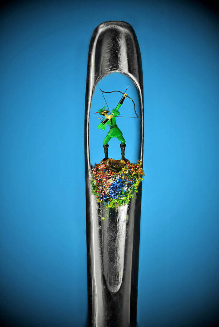 Позднее Уиган планирует выставить 14 верблюдов, которых он изваял и поместил в одно игольное ушко.
