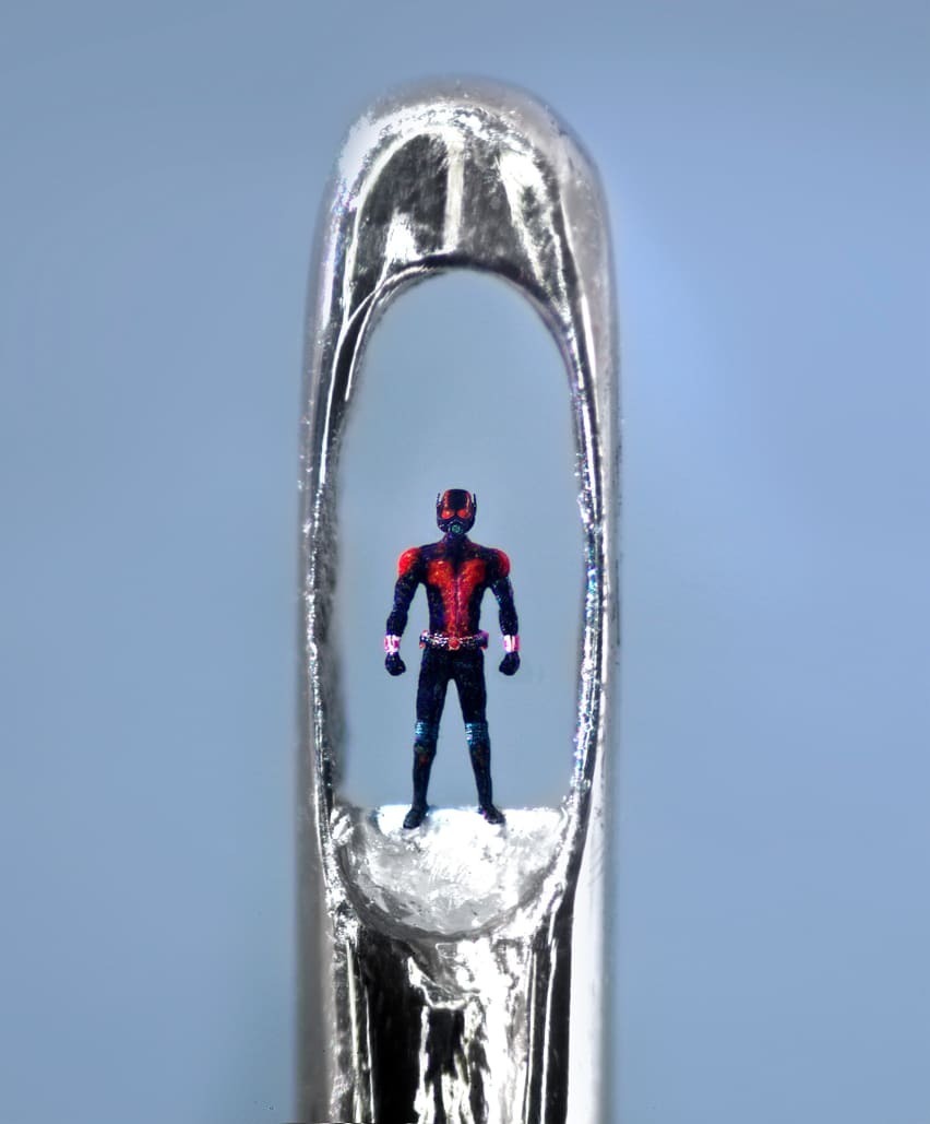 Серия микроскопических произведений искусства, настолько маленьких, что они помещаются в игольное ушко, будет выставлена в Великобритании в эти выходные.