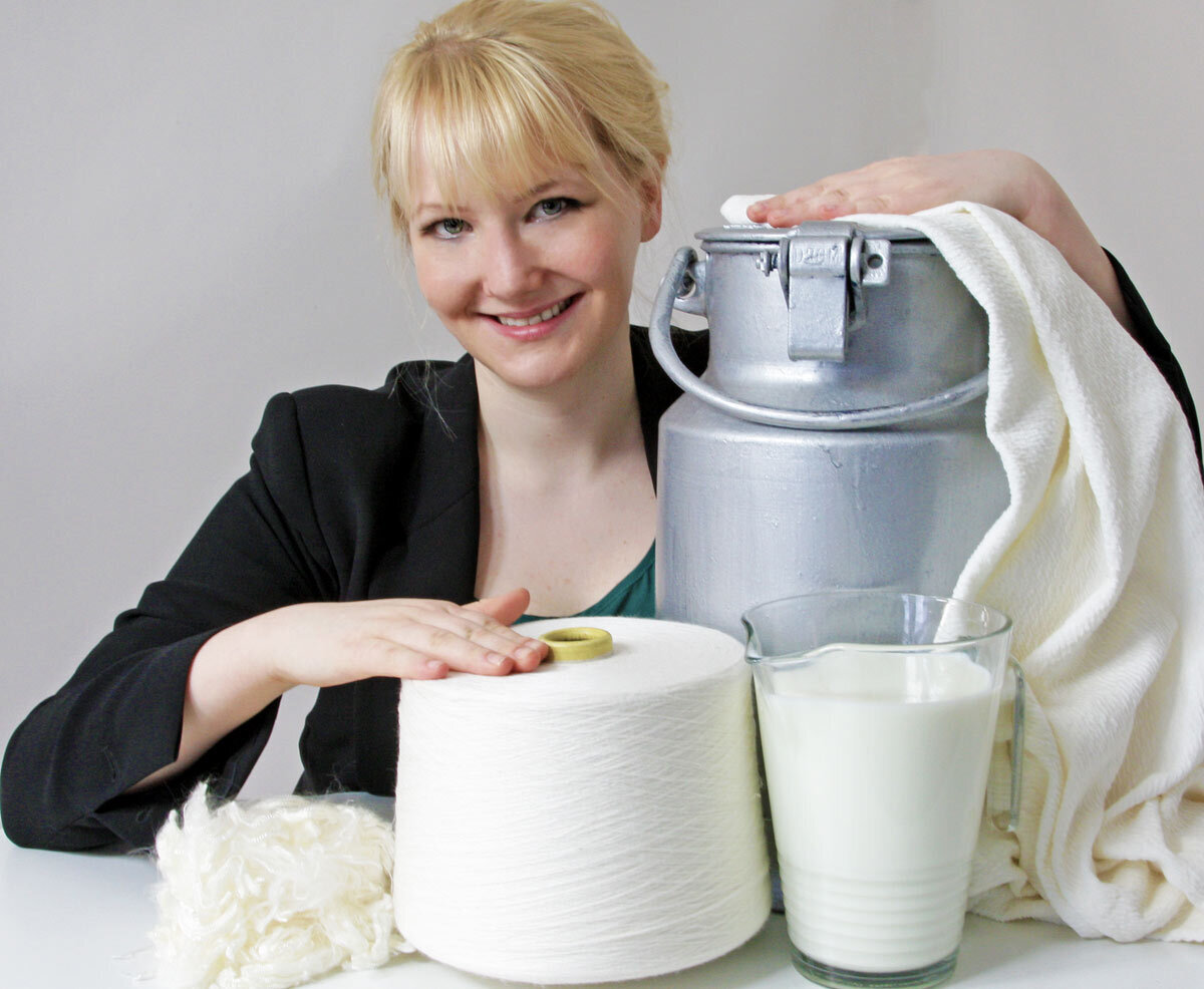 Революционный прорыв в индустрии моды был сделан немецким модельером Анке Домаске в сотрудничестве с Бременским институтом волокон. Их замечательным достижением является создание ткани QMilch, искусственного волокна, получаемого из коровьего молока, одного из самых натуральных сырьевых материалов, известных человечеству. Белок, содержащийся в коровьем молоке, называемый казеином, является универсальным соединением, используемым в пищевых продуктах, специальных красках, биологических клеях в медицине и основах для дерматологических мазей. Однако самое замечательное применение казеина - в производстве текстиля и пластмасс.