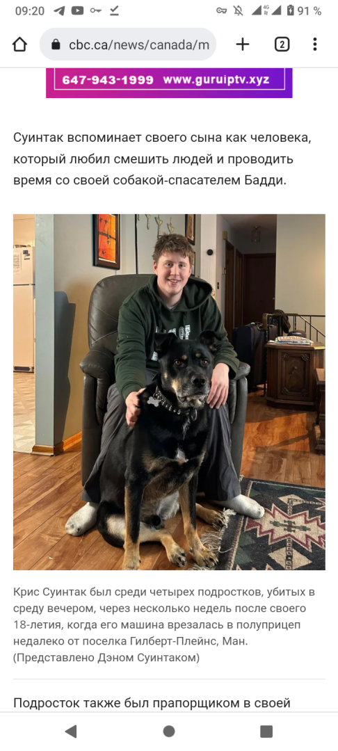 Крис Суинтак был среди четырех подростков, убитых в среду вечером, через несколько недель после своего 18-летия, когда его автомобиль не остановился на знаке «Стоп», когда ехал на север по провинциальной дороге 274 в Гилберт-Плейнс, примерно в 30 км к западу от Дофина, и столкнулся. с полуприцепом, говорят RCMP.