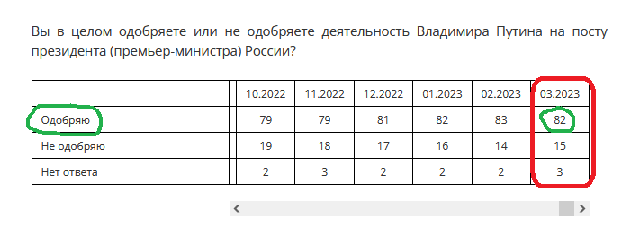 "Многие граждане не доверяют нашему Президенту" - ??? Вот даже признанный иностранным агентом Левада-центр говорит об обратном: по наисвежайшим данным этого центра в марте 2023 одобряют деятельность Путина на посту президента России 82% россиян. И даже среди тех граждан, кому едва хватает на еду, деятельность Путина одобряют 76%. И это вам не по данным "пропутинского ВЦИОМа", а по данным "правильного" центра. Ссылку и скрины прилагаю: www.levada.ru