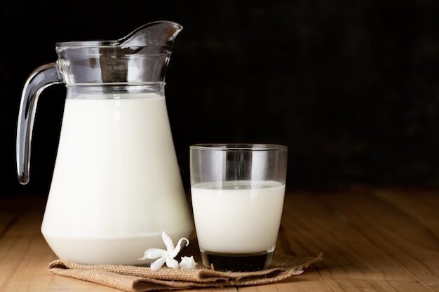 Молоко является хорошим источником кальция, который важен для построения и поддержания крепких костей и зубов.