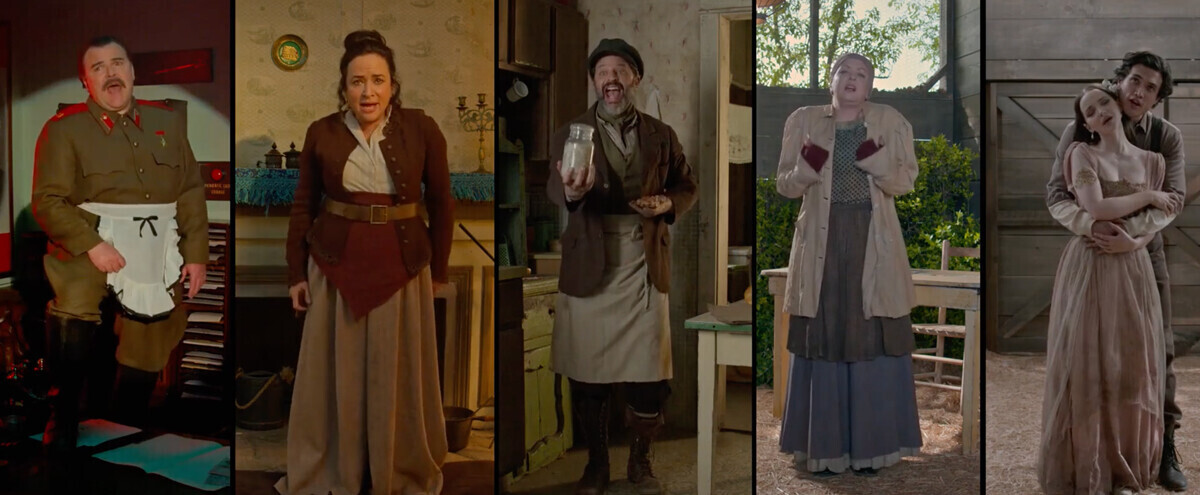"Русская" часть серии, по сути, является пересказом знаменитого бродвейского мюзикла “Скрипач на крыше”, который, в свою очередь, был основан на рассказах Шолом-Алейхема о бедном еврее, молочнике Тевье. Несмотря на очевидный пародийный тон, основные конфликты мюзикла тщательно сохранены: антисемитские погромы побуждают евреев присоединяться к революционному движению.
