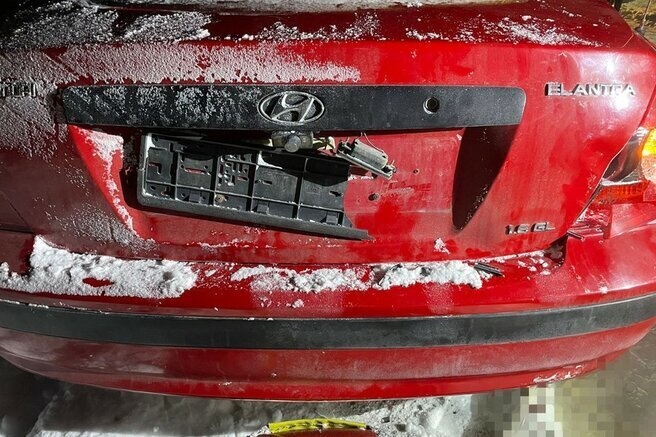 Парень был прицеплен к машине своего друга. Во время катания не удержал буксировочный трос , вылетел на обочину в припаркованный автомобиль.
