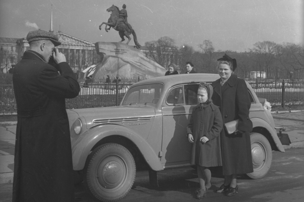 Автомобиль "Москвич" перед памятником Петру Великому.
