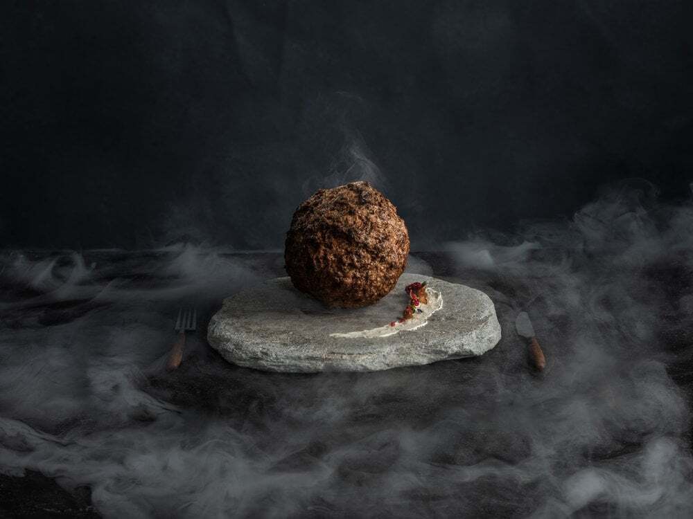 Сферическое творение размером между мячом для софтбола и волейбольным мячом. Он был создан с использованием последовательности ДНК миоглобина мамонта, белка, придающего мясу его цвет и вкус, а также генетических данных африканских слонов, ближайших ныне живущих родственников мамонта, чтобы заполнить любые пробелы. Затем ученые вставили эту последовательность в клетки овцы и заставили их размножаться в 20 миллиардов клеток, из которых и получилась конечная фрикаделька.