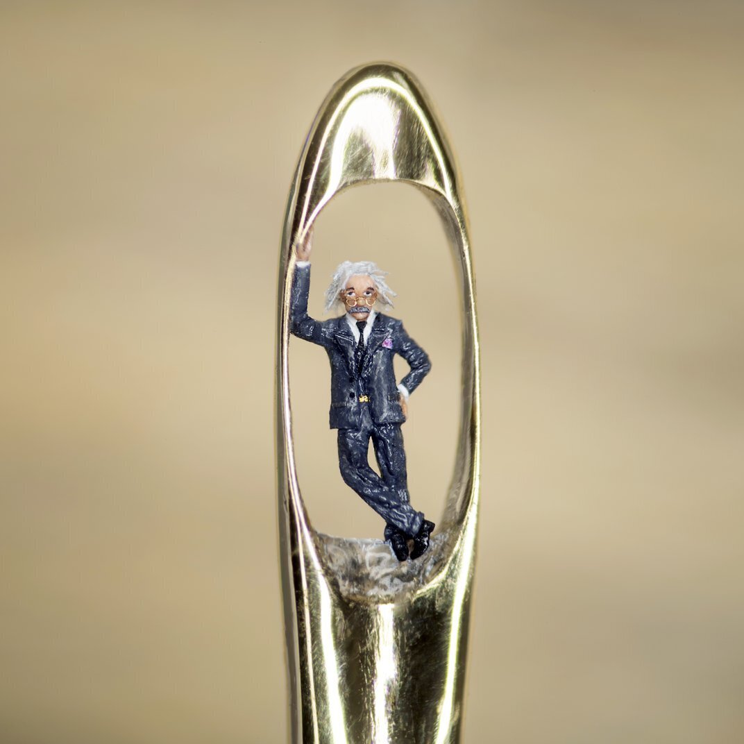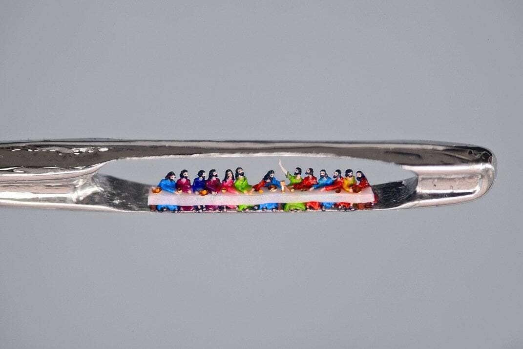 Крошечные скульптуры Уилларда Уигана, иногда нарисованные одной ресничкой, помещаются в игольное ушко.