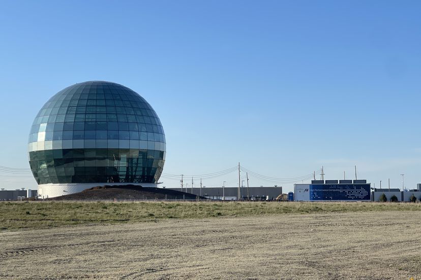 Foxconn настаивает на том, что большой стеклянный шар на этом месте на самом деле является центром обработки данных, хотя на самом деле это офисное помещение.