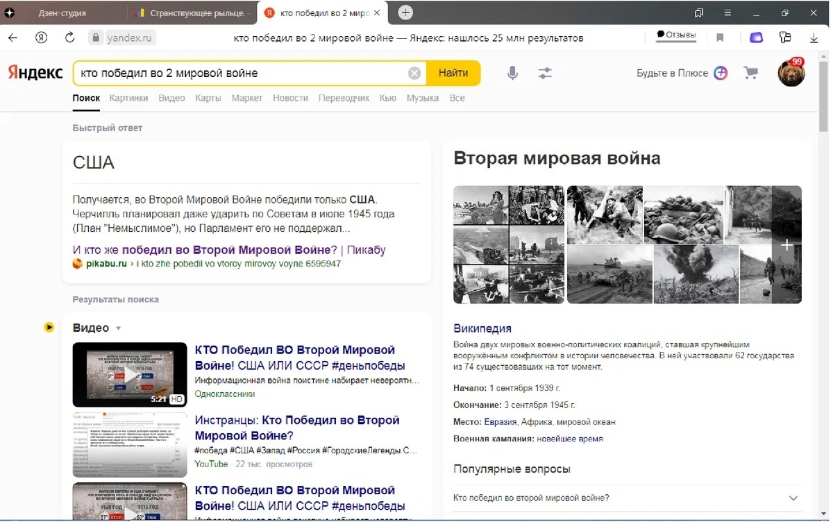 Наступление на Россию, её святыни, не скрывается и идёт по всем фронтам. Такие подборки выдачи создают люди, выбирая из нескольких вариантов "правдивый" путём большинства голосов. И что-то мне подсказывает, что участвуют в такой "викторине", которую Яндекс честно оплачивает, надеясь на добросовестное мнение большинства те, кто хорошо знает русский язык, но вот с Историей проблемы (ну или с совестью). И вот результат: