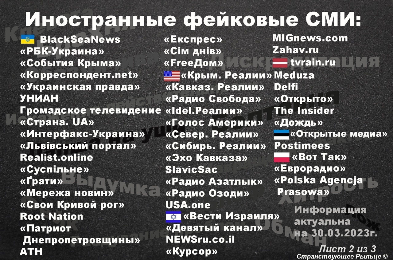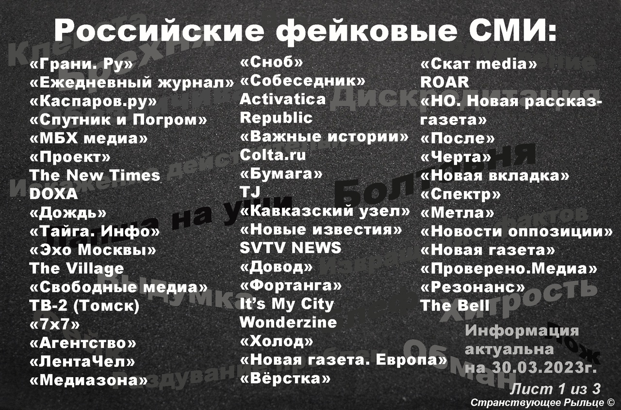 Все эти СМИ, российские и зарубежные лишены лицензий, либо заблокированы на территории Российской федерации.